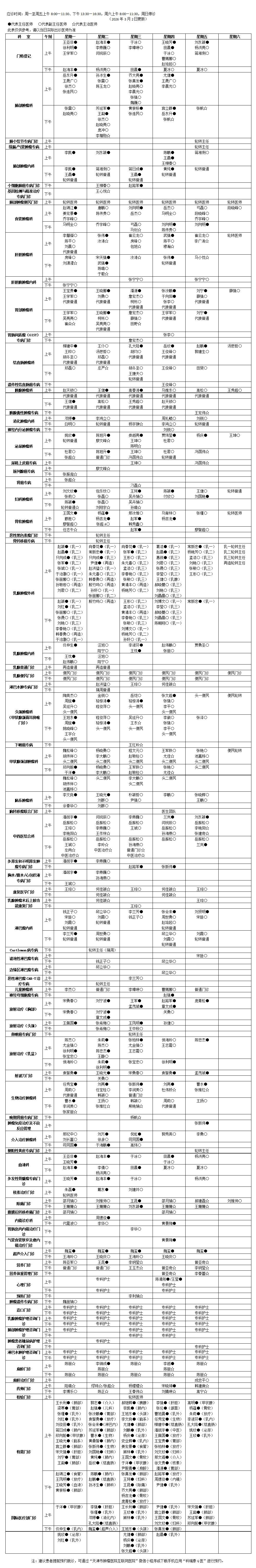 天津市肿瘤医院医师出诊表
