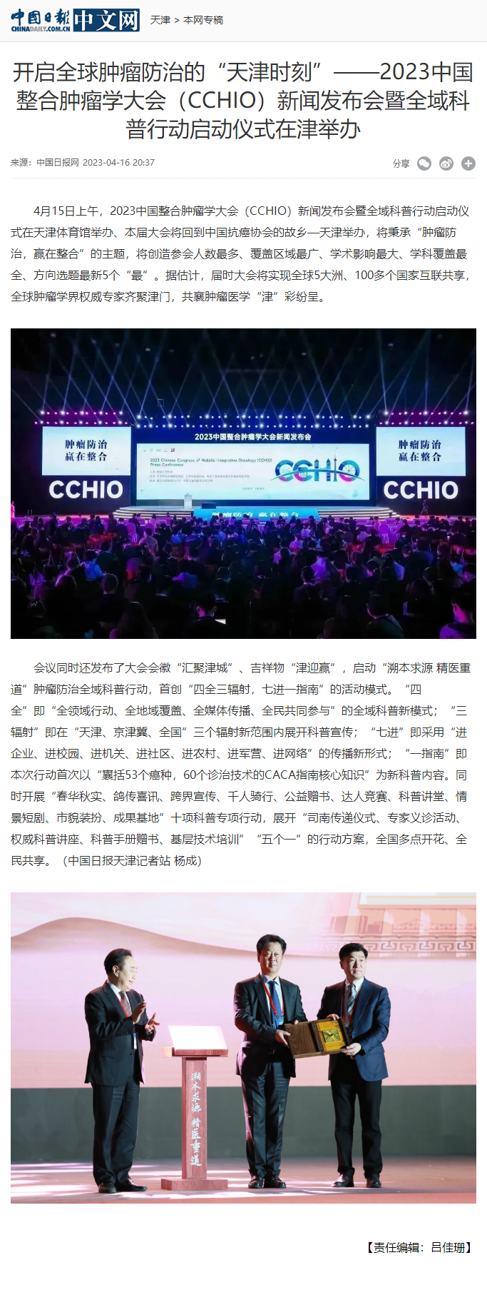 开启全球肿瘤防治的“天津时刻”——2023中国整合肿瘤学大会(CCHIO)新闻发布会暨全域科普行动启动仪式在津举办--《中国日报》
