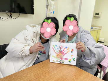 活动中,多位护士也参与其中。这些手掌印画不仅是艺术作品,更是医患携手、家庭同心抗击病魔的生动见证。