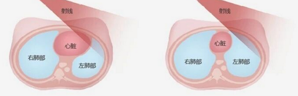 (图:自由呼吸与DIBH下心脏位置对比示意图)