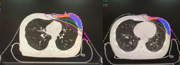 徐利明主任查看了她的伤口愈合情况,肯定地说:“目前是适合做放疗的,而且现在也正是比较理想的时机。我给你详细介绍一下‘深吸气屏气技术’。”